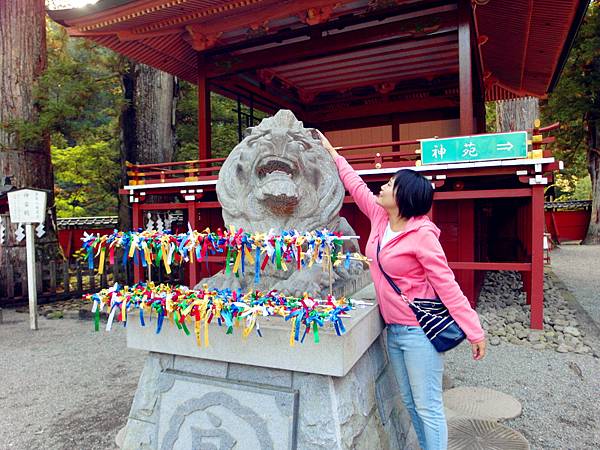 到了二荒山神社,外面有兩頭石獅子,下面寫想要幸運就要摸耳朵,我們兩個大衰人一看馬上奮不顧身的衝向前摸半天,希望獅子的耳朵有用。