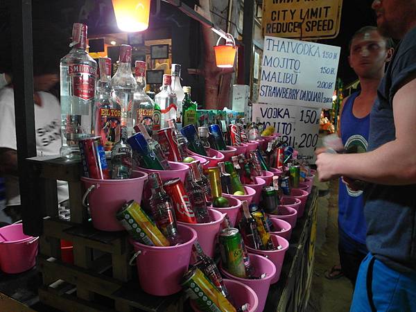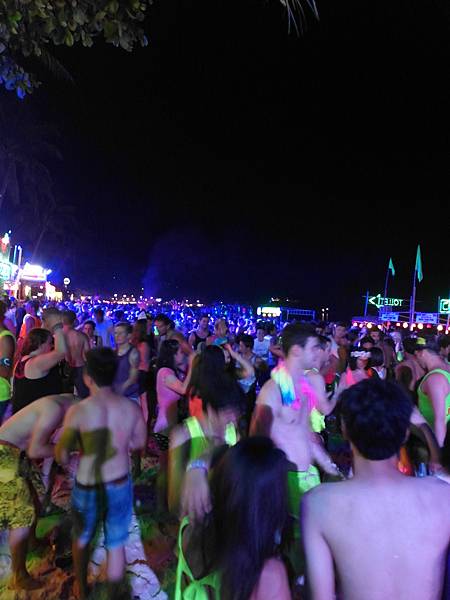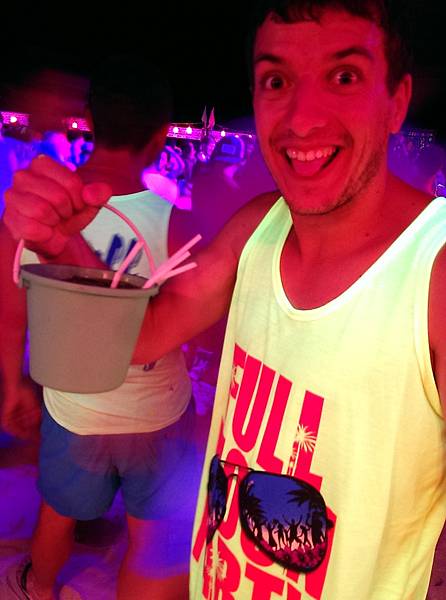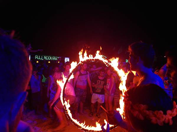 Full moon party,傳說中世界三大海灘派對之一,每個月的滿月都在帕岸島最南端的沙灘舉行,整個沙灘滿滿都是人,整個晚上一直到天亮!!這邊的酒是一桶一桶賣的,老皮k.o.了四桶,結果下場就是錯過隔天早上的世界拳賽​,下午起床後老皮說他的記憶只到第二桶就結束了