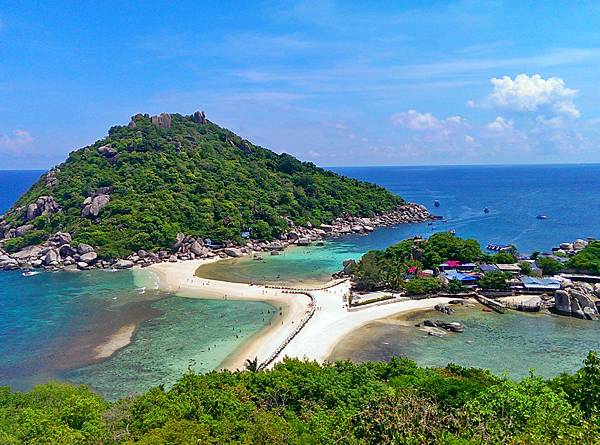 今天來到位於龜島西北方的私人小島南園島,到島上不能帶塑膠瓶,我們只好含淚把帶來的水放在入口處,結果爬上這個拍照的view point超累的差點沒脫水😱不過看到這麼漂亮的風景一切都值得啦! 現在老皮浮潛去了,我很幸運的因為生理期而躲避了再度踏上海參的可能(真的超多海參我在岸上就看得一清二楚),現在只能在這裡po照片​。南園島開放時間從早上八點到下午五點,入場費100泰銖。
