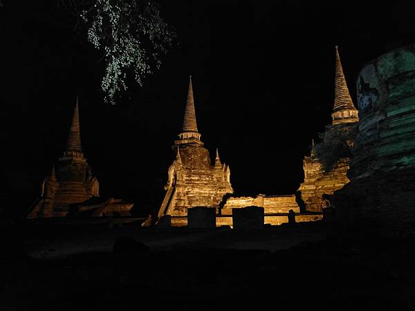 晚上我們看到發光的寺廟本來想進去照相,但是守門的說一人要50泰銖的入場費,我們又窮鬼命復發決定在遠方偷拍就好了。