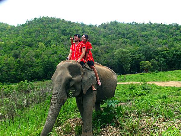 跟一般的泰國騎大象有點不同,一般騎大象是坐在象背的椅子上,由撒哇低咖來控制大象。但是這個部落裡的大象是沒有背椅子的(他們說因為大象是好朋友不是奴隸),並且沒人幫忙要自己控制大象,總之就是把自己當成原始人就對了(?)